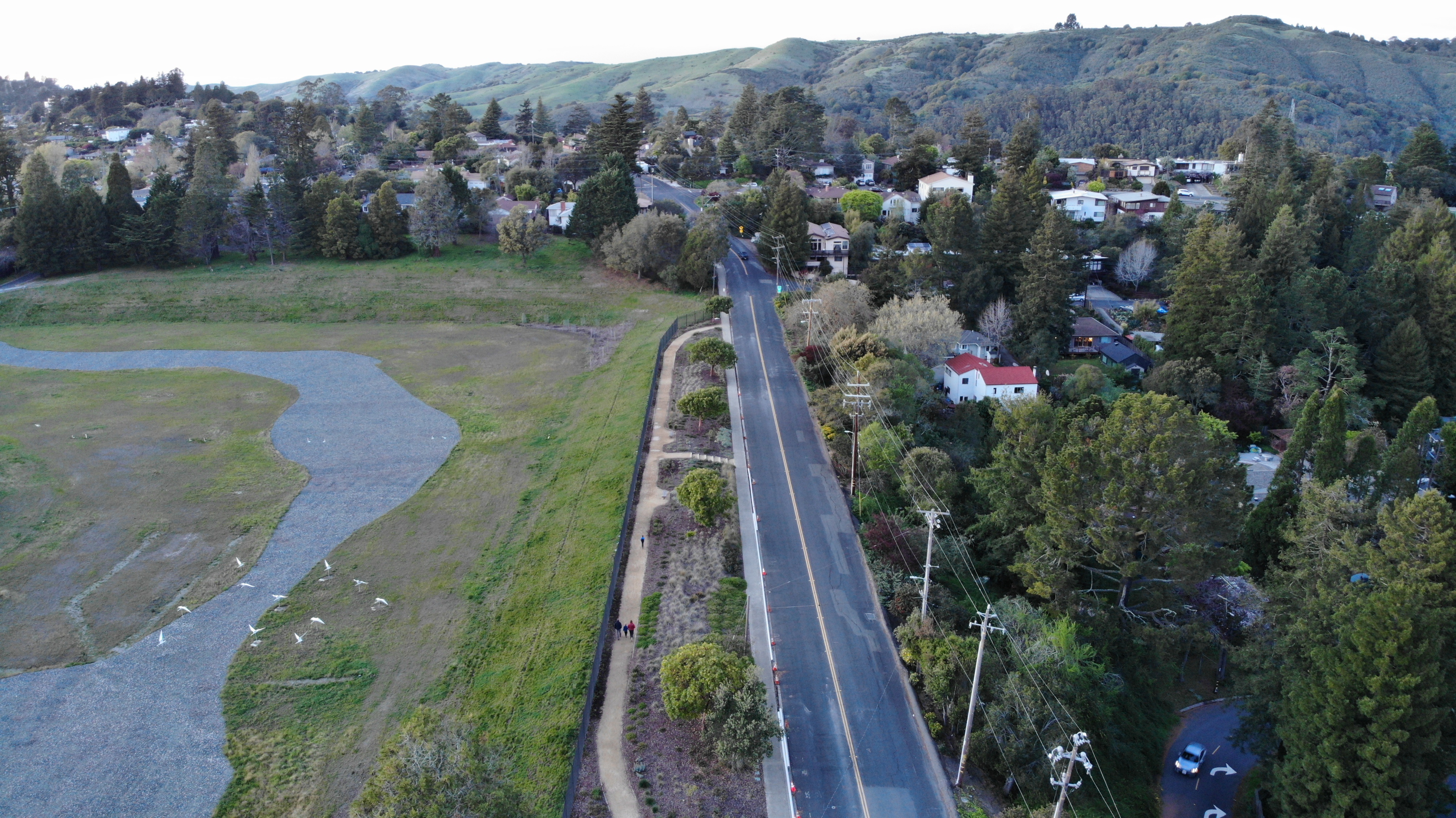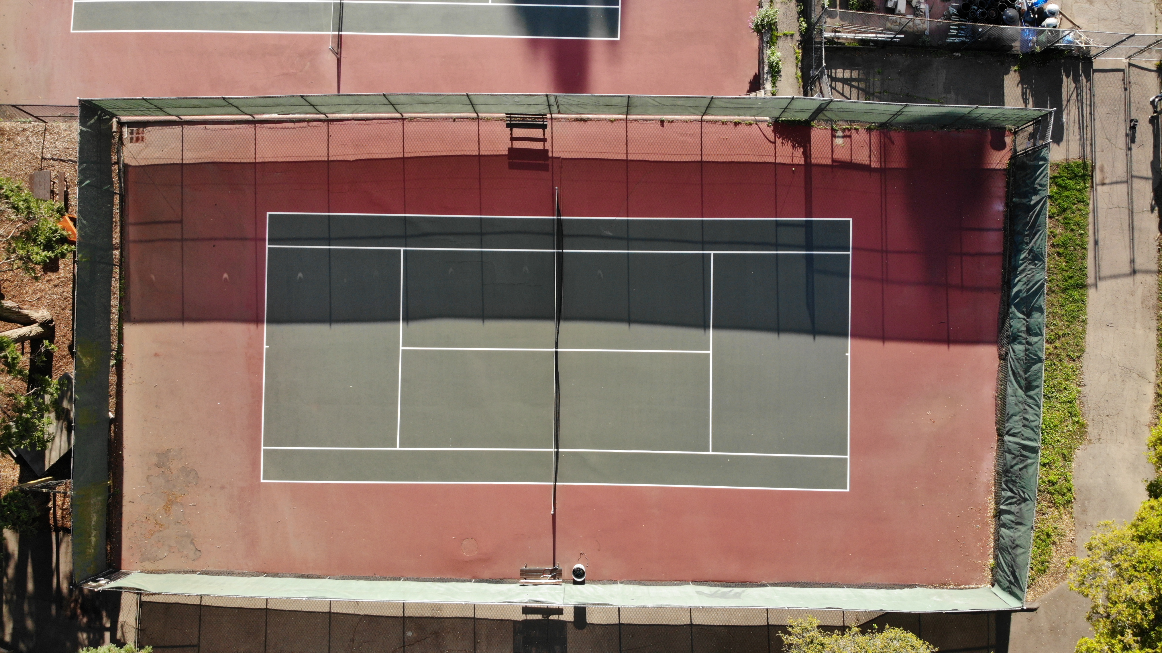 Although it may look scary to some, I think it is nice that the earth is getting a break from the constant noise and smog that some of these places produce. For this project, I set out to take similar photos of my neighborhood. I was especially looking for busy places like tennis courts, playgrounds, and street intersections. I took all the pictures with my drone to capture the same aerial perspective as the above photos. For each photo, I have marked the image's location on a map so that you know exactly where the photo was taken. Hopefully, they will help bring the outside world to those who are feeling cooped up indoors. Take a look: